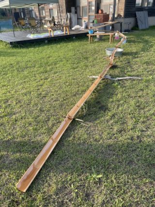 子ども達の要請を受けて簡易流しそうめんをやっていたら目を離したすきにおかしなことになっていました。